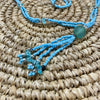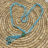 A long double layered blue bead necklace.