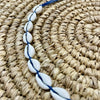 A simple blue string cowrie shell necklace - adjustable.